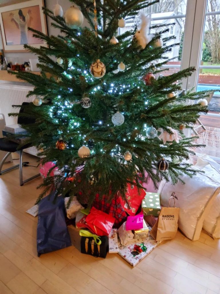 voilà le traditionnel sapin est décoré. La partie la plus sympa étant évidemment d’aller chercher les quelques nouvelles boules de l’année, à paillettes s’il vous plait!
