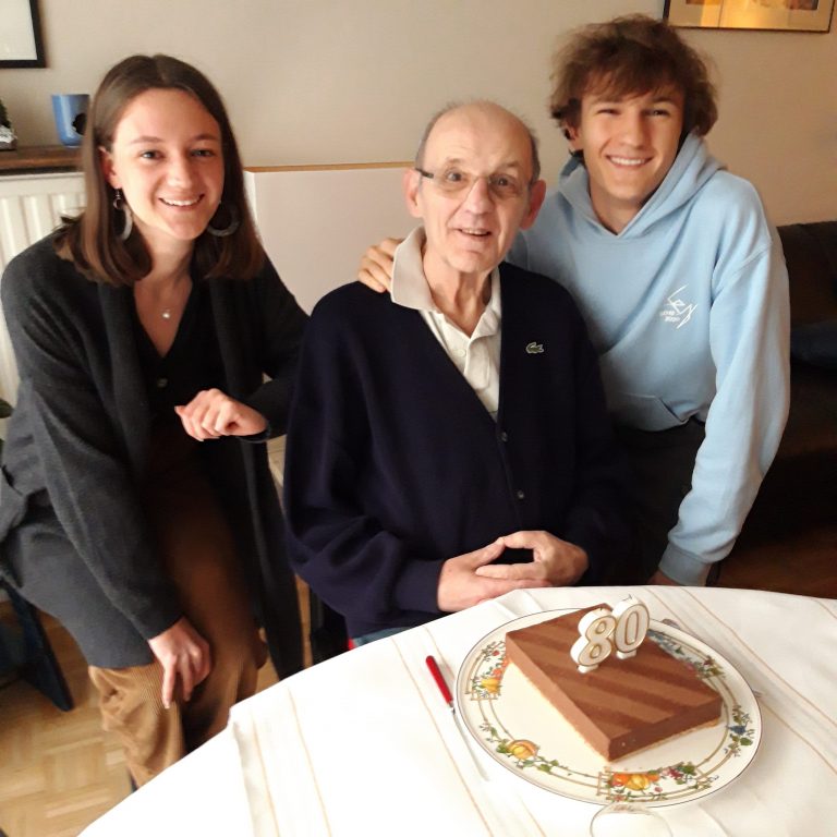 Un peu flappy, le papy mais quand même assez d’énergie pour souffler ses 80 bougies. Pas de grand diner, juste un ^petit morceau de gâteau et une bonne coupe, c’est très bien.