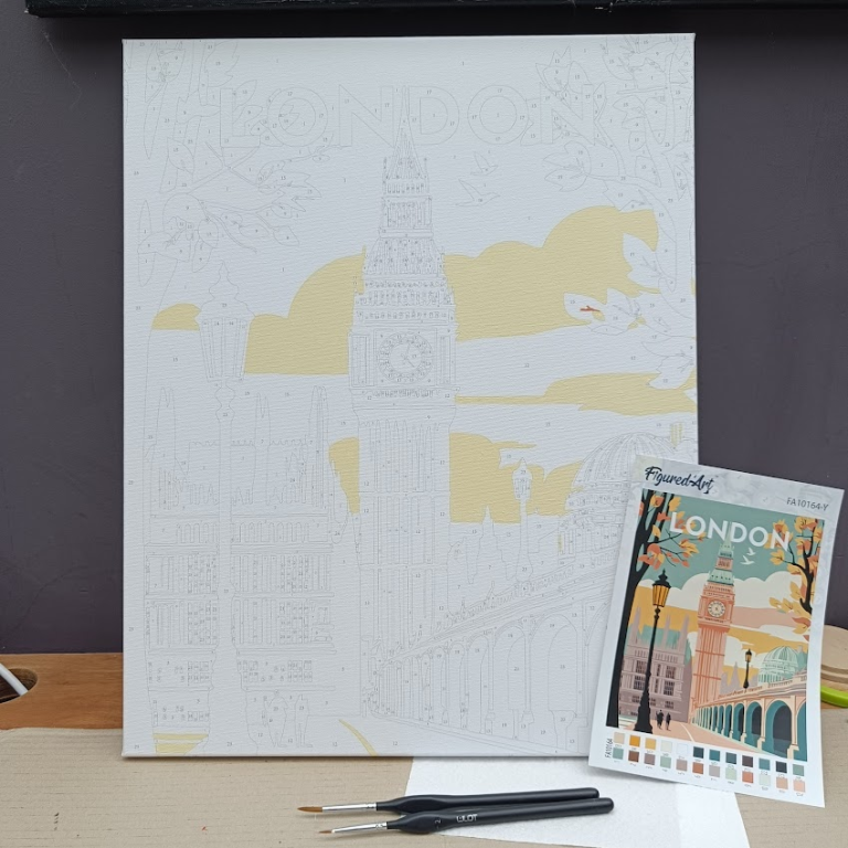 Mais j’ai quand même fini mon Klimt. De loin ça le fait! Donc je l’ai accroché au mur du living. En remplacement d’une ancienne peinture de Mo qu’on avait beaucoup vu. Et comme elle ne peint plus pour remplacer, hop, à moi. Et je me suis commandé 3 nouvelles toiles, des villes comme celle d’Édimbourg. Bruxelles, Londres et Venise. j’aime bien cette série.